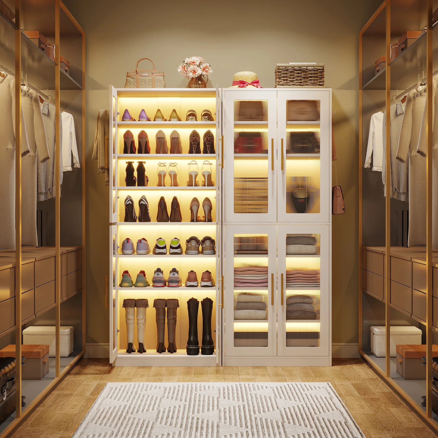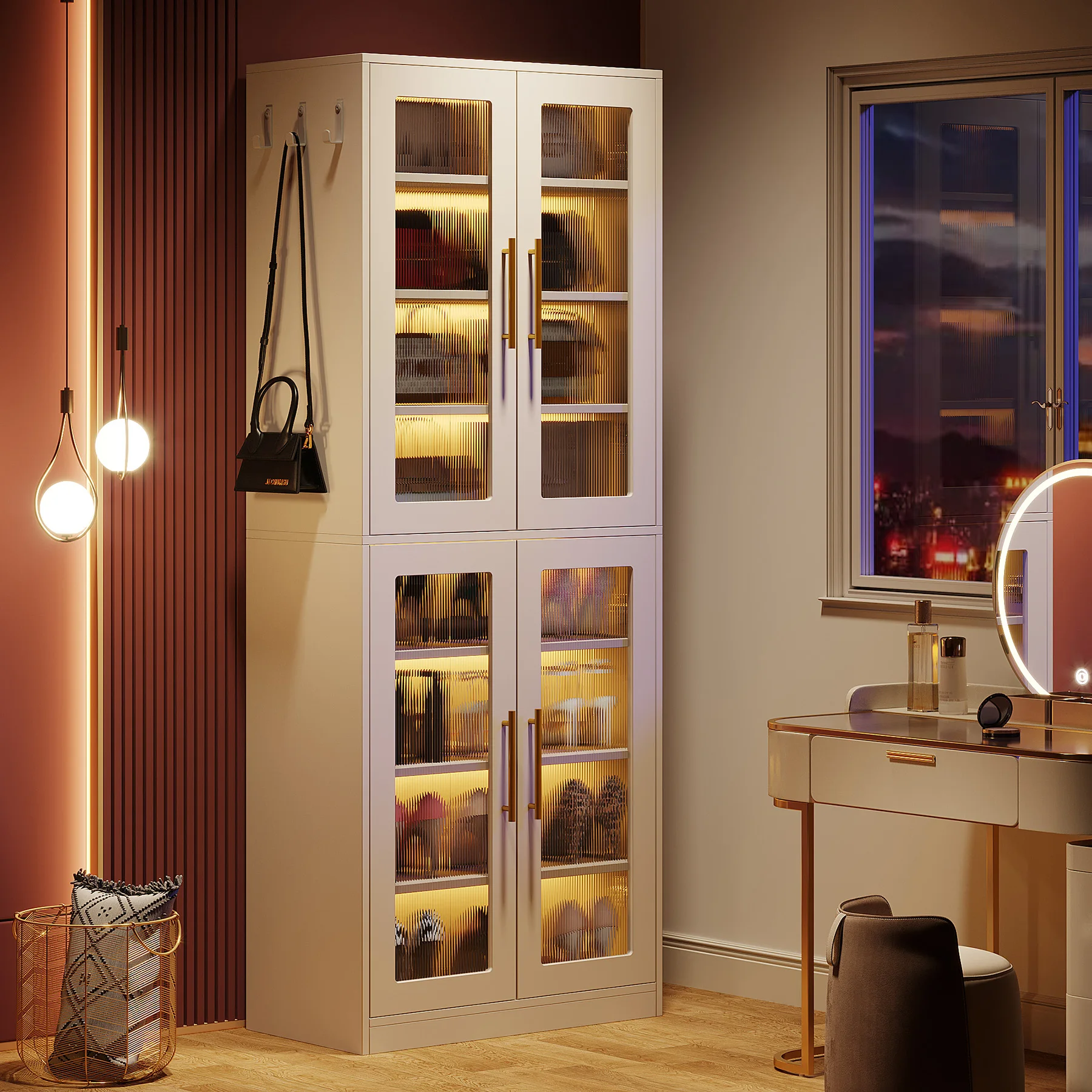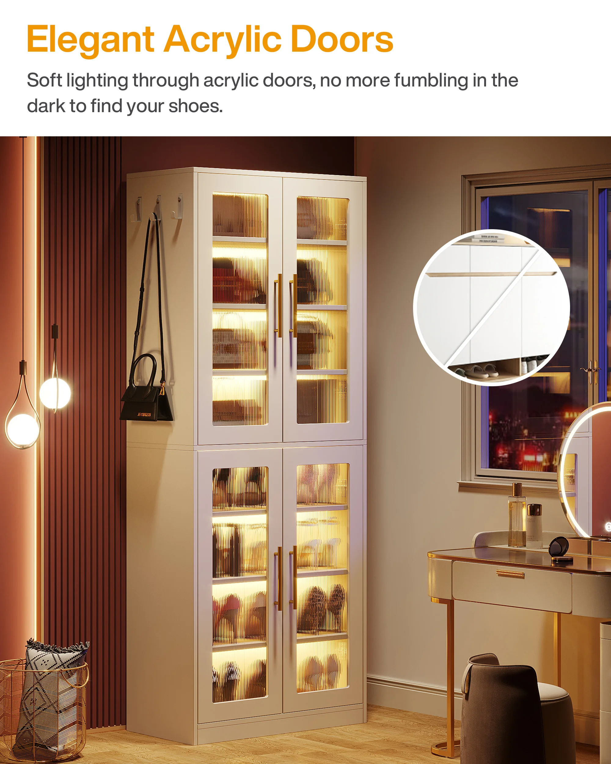 Tribesigns Tall Shoe Cabinet with Acrylic Doors and LED Lights, 8-Tier Entryway Shoe Storage Rack with Adjustable Shelves