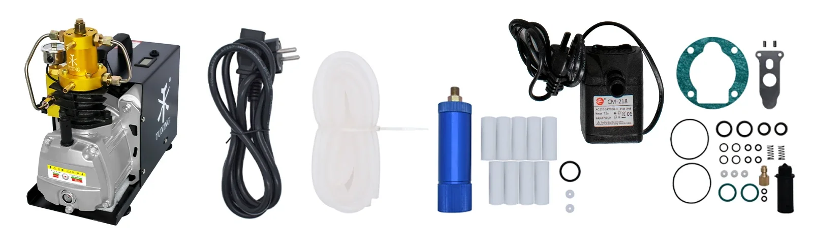 This pcp/scuba compressor features oil and water separator filtration. Clean air will be discharged by the machine, suitable for the mini diving bottle, PCP rifle, paintball tank, air pistol, paintball air rifle, fire fighting, leakage detecting, pressure-tight test, air impermeability test, etc.
