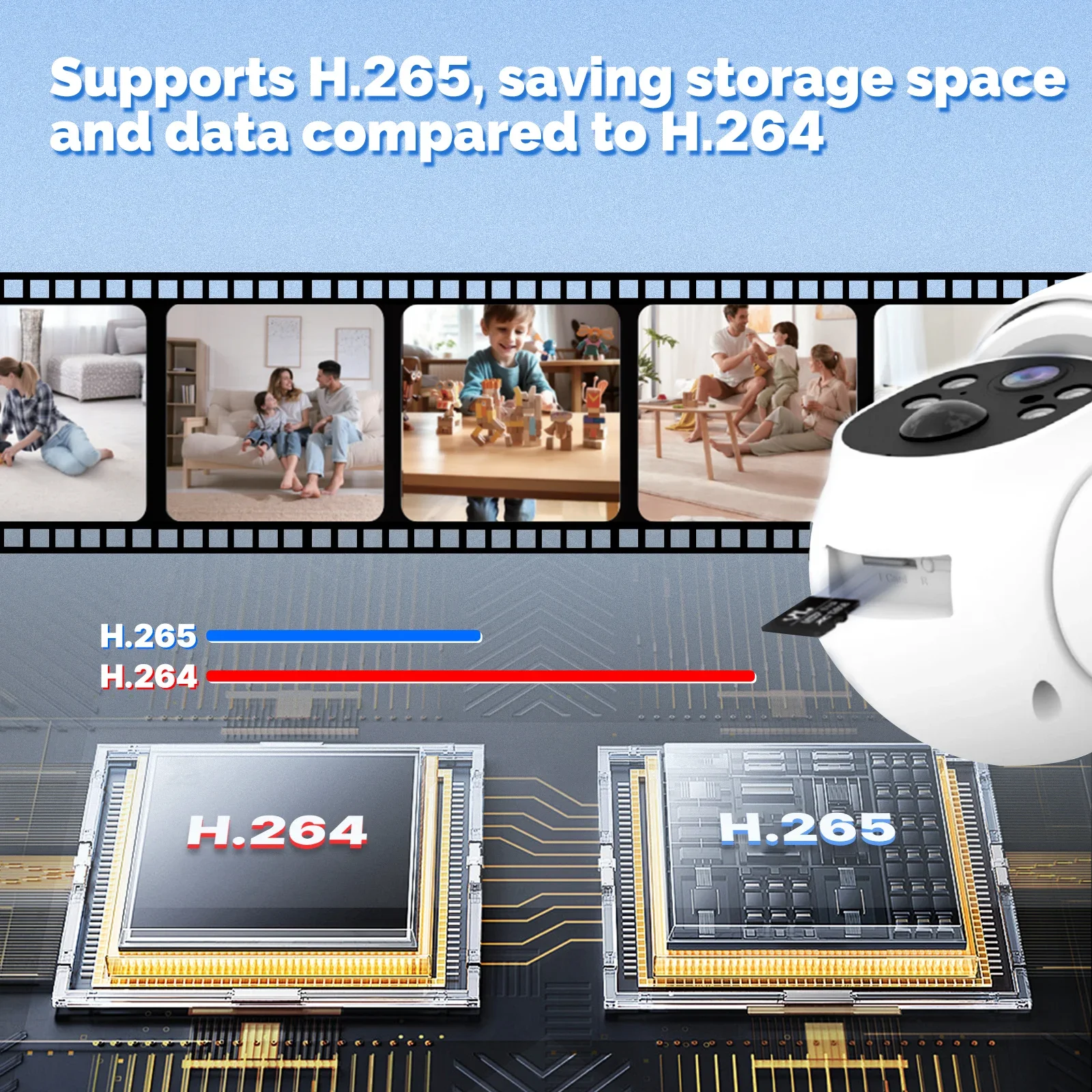H.265 encoding technology loads faster, plays more smoothly, and saves 50% of video storage space and data usage. No more worries about insufficient memory preventing video playback.