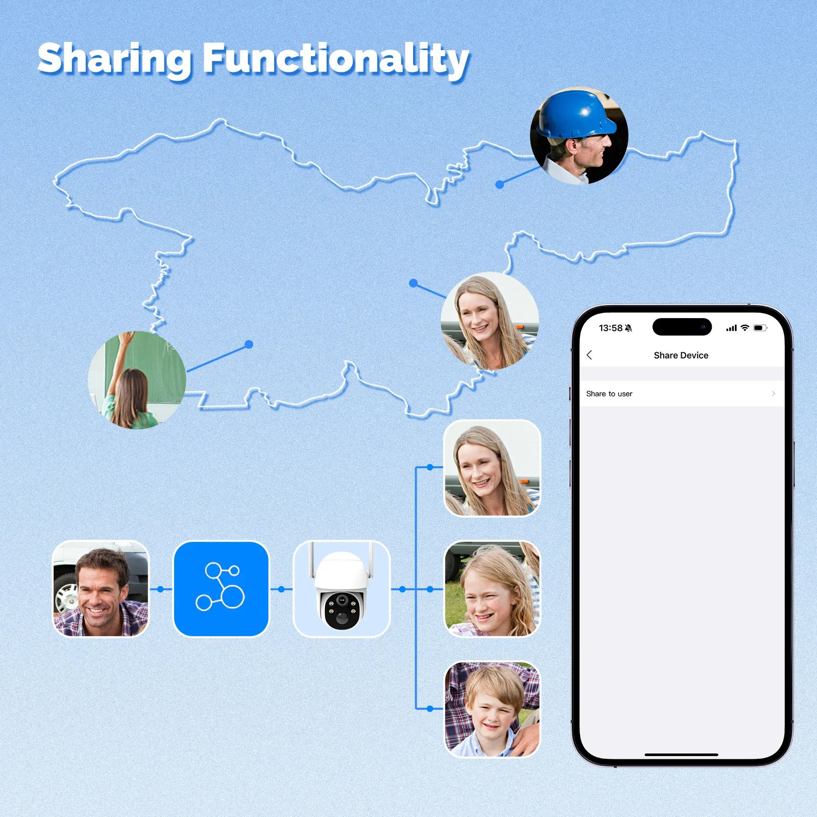 Share camera access with your family, supporting multiple users to use the 4G camera and watch simultaneously. Enjoy a smart and convenient life together.