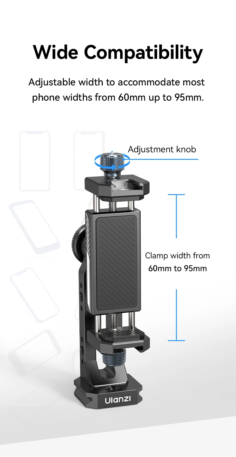 Adjustable width to accommodate most phone widths from 60mm up to 95mm.
