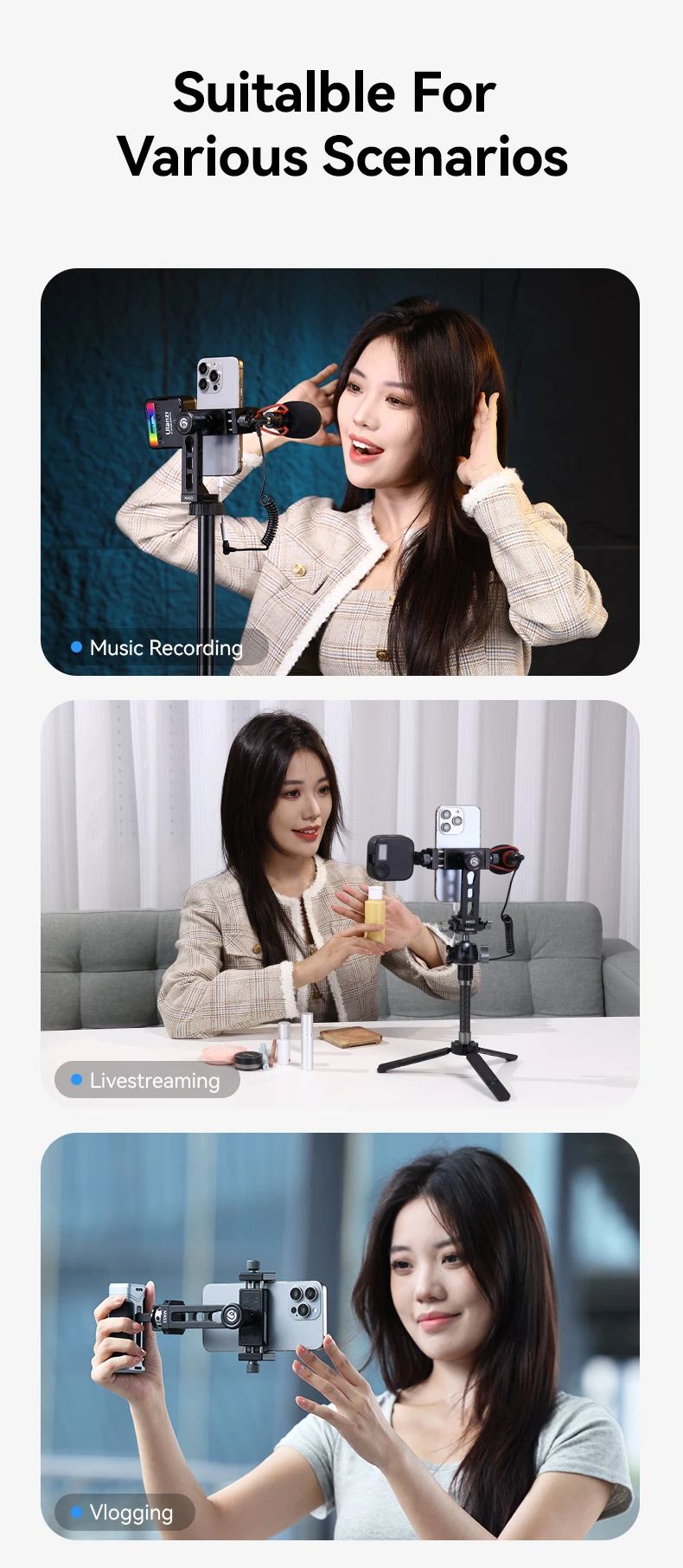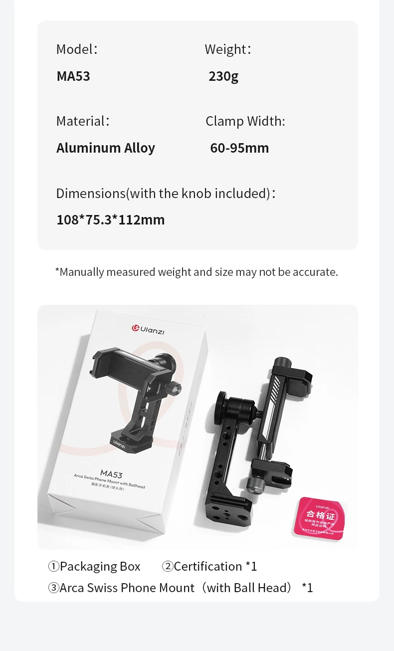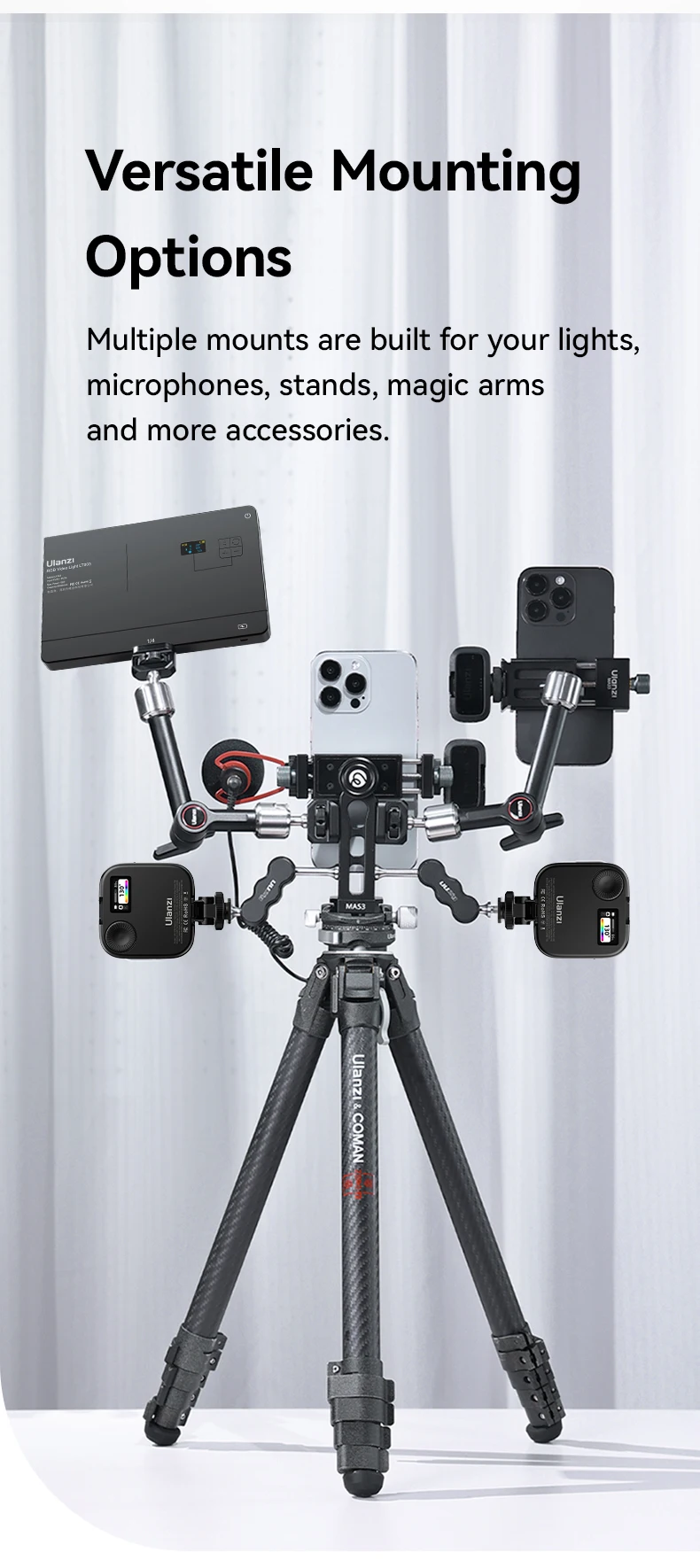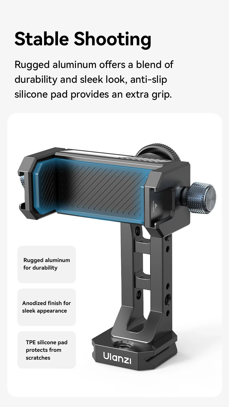Ulanzi MA53 Tripod Phone Mount, Smartphone Tripod Adapter with Arca Swiss/Uka Port, 2 Cold Shoe, 360° Metal Cellphone Tripod Adapter, iPhone Samsung Holder Tripod for Photo Video Vlogging Rig
