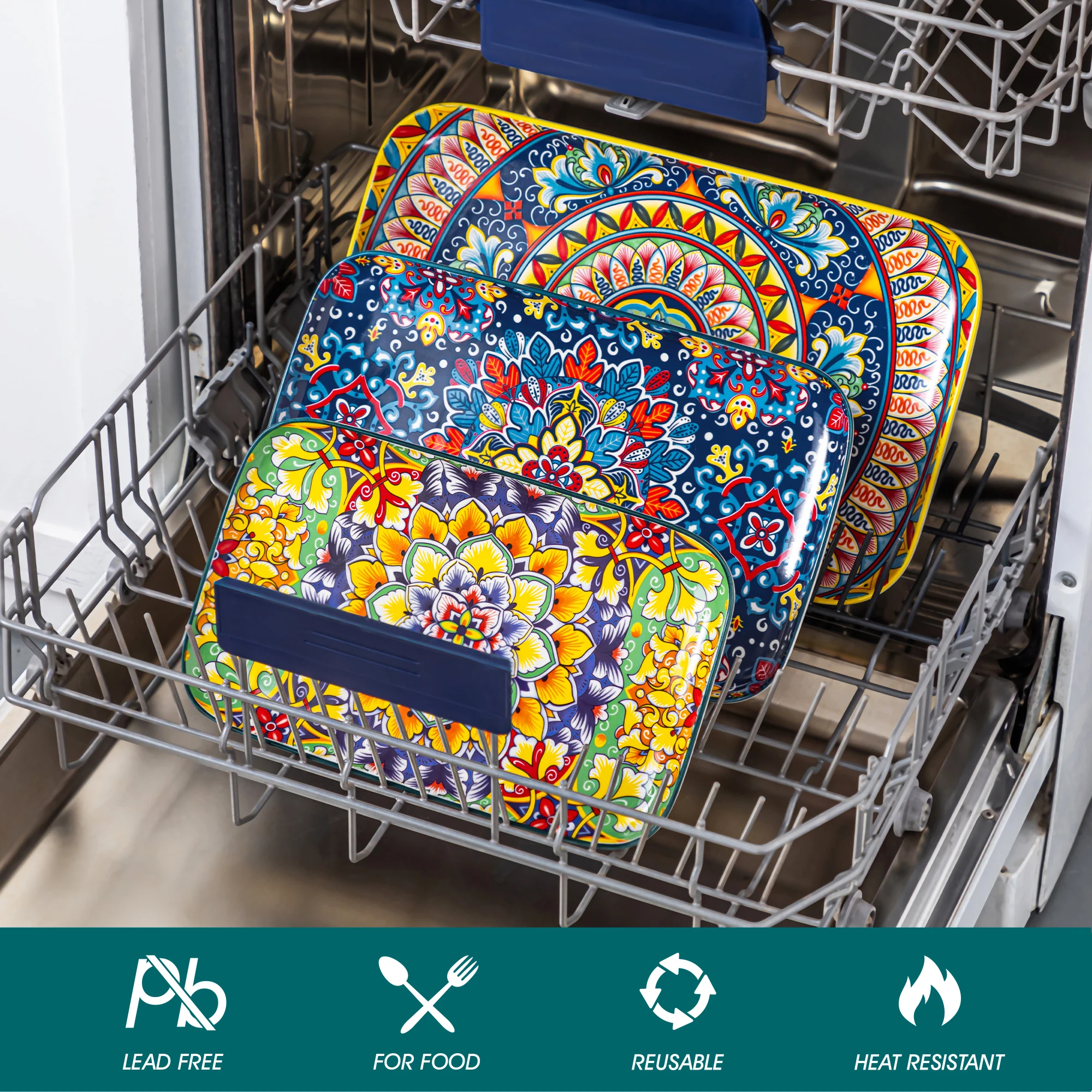 vancasso 3/6 Piece Long Plate Ceramic Salad Plates Set 3 size Rectangular Dessert Plates for Cake/Salad/Appetizer Oven Safe