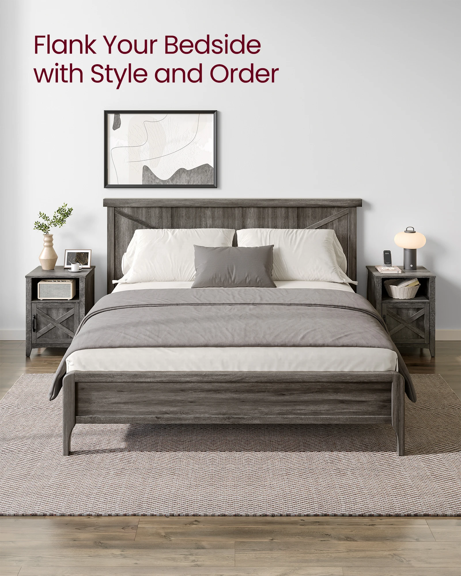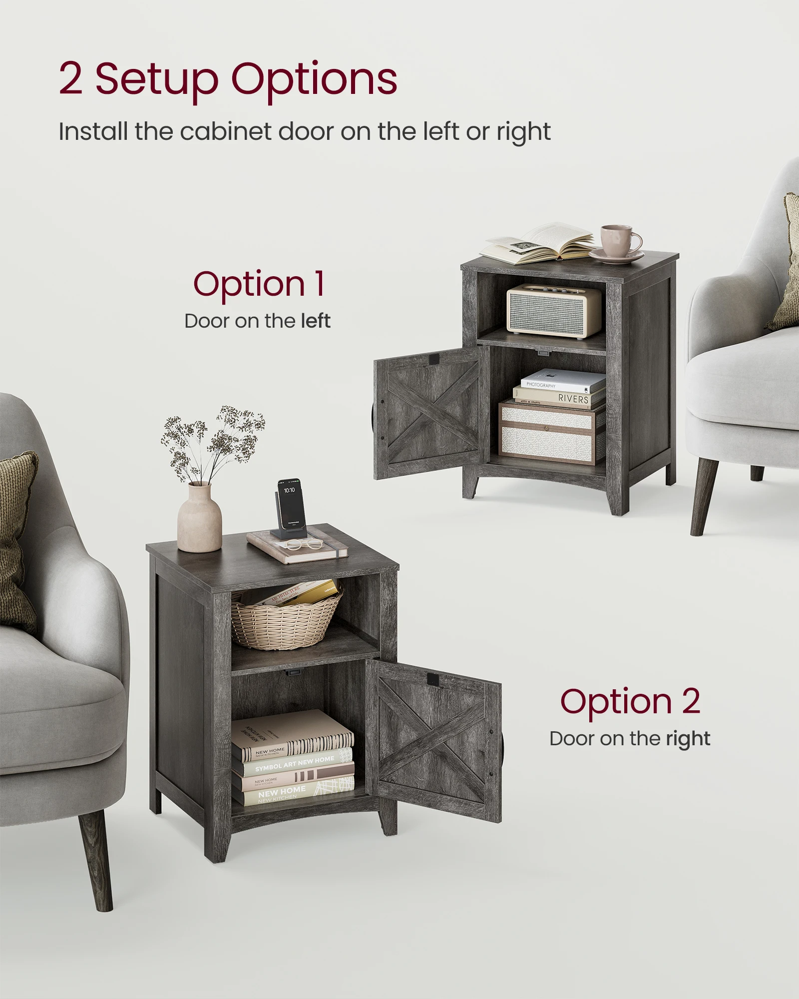 [Versatile All-Rounder] Imbued with rustic hues and the charm of a barn door, these tables bring farmhouse elegance to your space. Their versatility shines as nightstands in the bedroom, side tables, or coffee tables in the living room