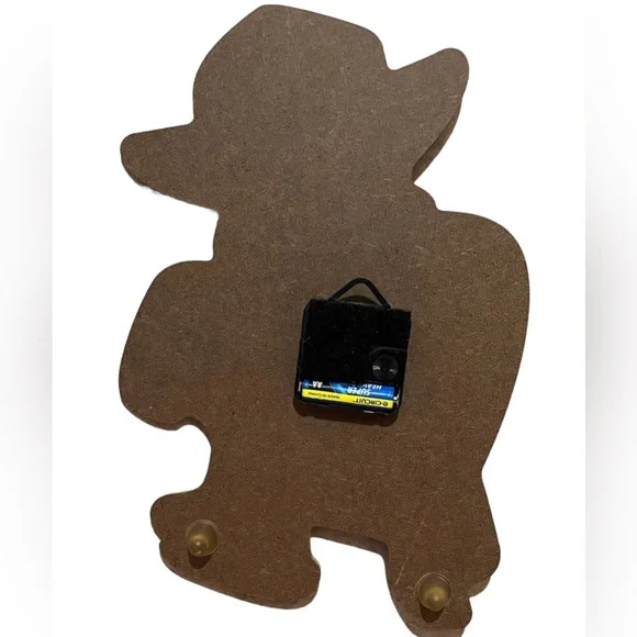 This is is working shape. It takes a AA battery which is NOT included due to shipping. Even though it is in the picture, it is not included. The item does show marks and some fading. And the long hand shows so wear. And lease view the photos. As the item comes in as is shape. Comes from a smoke free and very clean environment.Measurements are approximately a little over 12” high by a little over 8” wide.