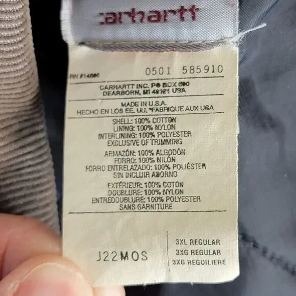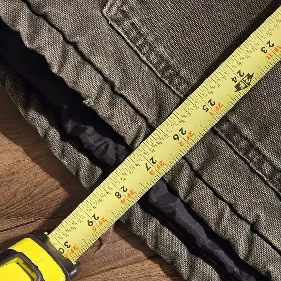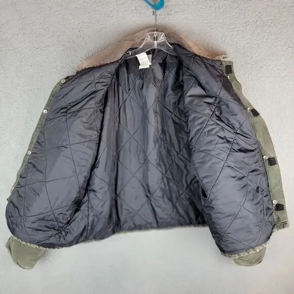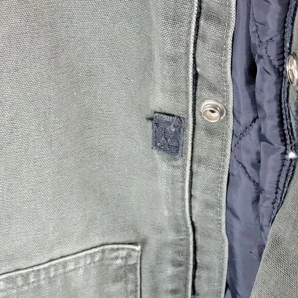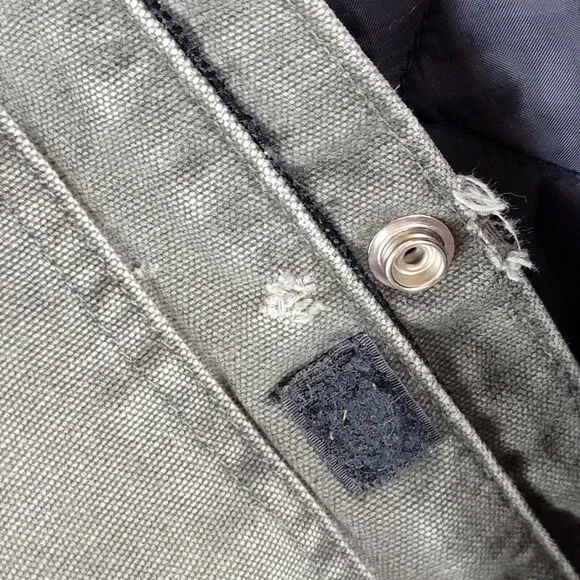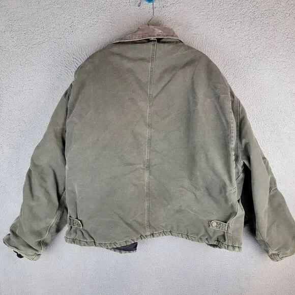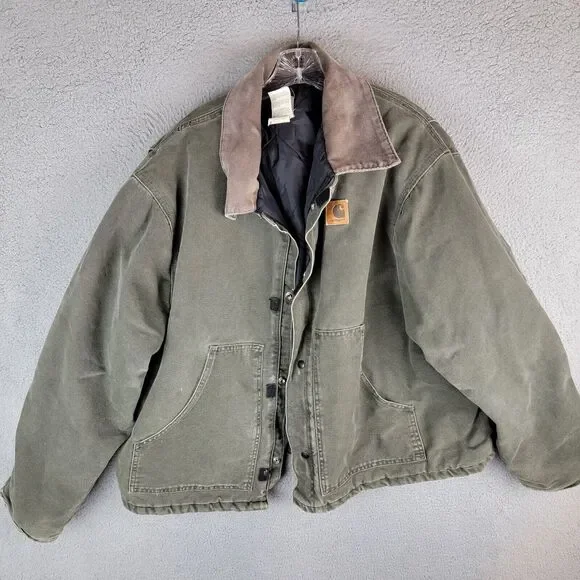 VTG Carhartt Jacket Mens 3XL J22MOS Green Detroit Duck Canvas Quilt Lined USAHas some small Tears please see pictures* The item is pre-owned unless noted as NWT* Please see all photos for approximate measurements to compare and assure it will fit.* If the item has any "Flaws" it will be noted above or documented in the pictures.* All items have been cleaned per standards & policies.* Items may appear lighter in the pictures than in person due to the professional lighting.* If you have any other questions, please feel free to write a comment and we will respond quickly.* We add new items daily so don’t forget to hit "Follow" to get the best deals.We ship items out EVERY DAY so EXPECT a FAST delivery!Once our items are packed and stored, we cannot take any additional measurements sorry for the inconvenience