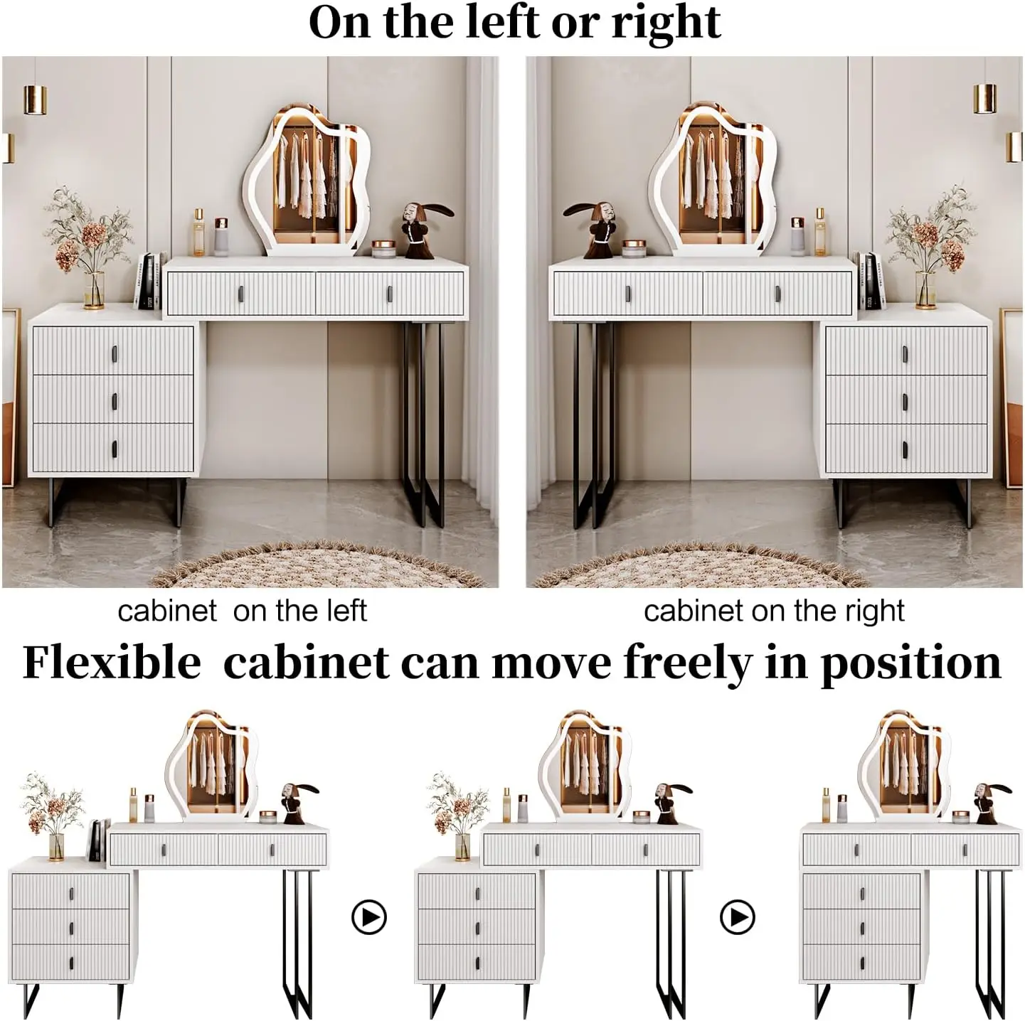 White Vanity Desk Makeup Vanity with 5 Drawers,Modern Makeup Table with Adjustable Cabinet for Bedroom,Makeup Room
