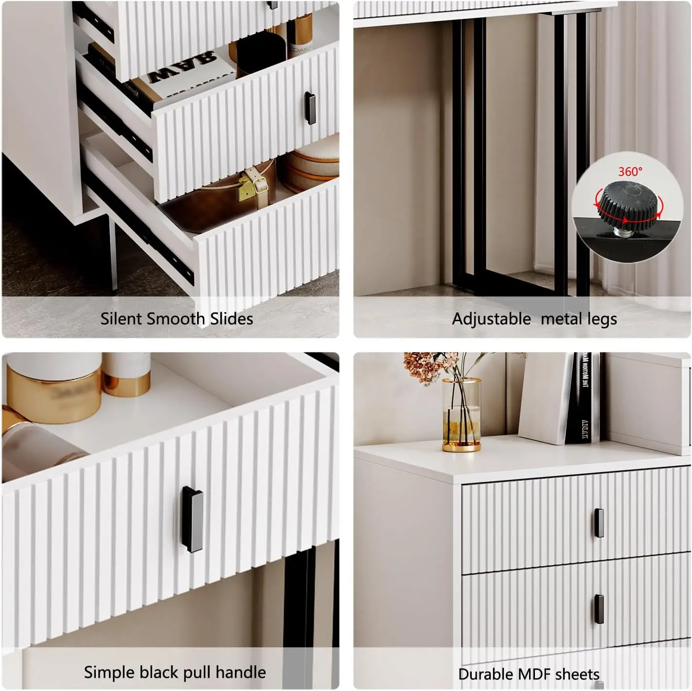 • 【Metal slides and Handles】 This white Vanity Desk is made of scratch-resistant, moisture-resistant MDF boards, and sturdy metal handles, a light wipe with a damp cloth will give the fresh look. easily on ball bearings, allowing you to effortlessly push and pull drawers to keep your items neat.