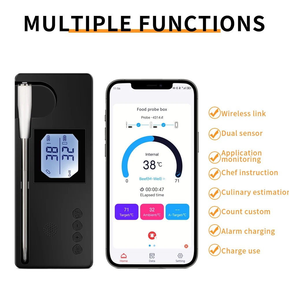 Wireless Smart Barbecue Thermometer APP Control Meat Thermometer Digital Bluetooth Food Temperature Tester for Kitchen Cooking
